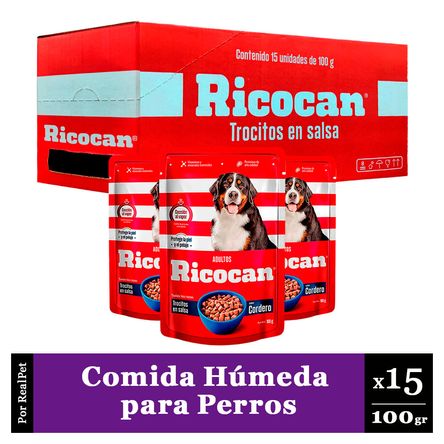 Pack Caja x15 Comida Húmeda Perro Ricocan Cordero 100gr