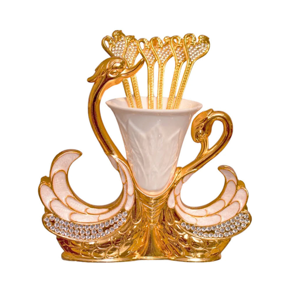 Pack de 6 Cucharas con Porta Cubierto Pareja de Cisnes Oro Panorama Hogar
