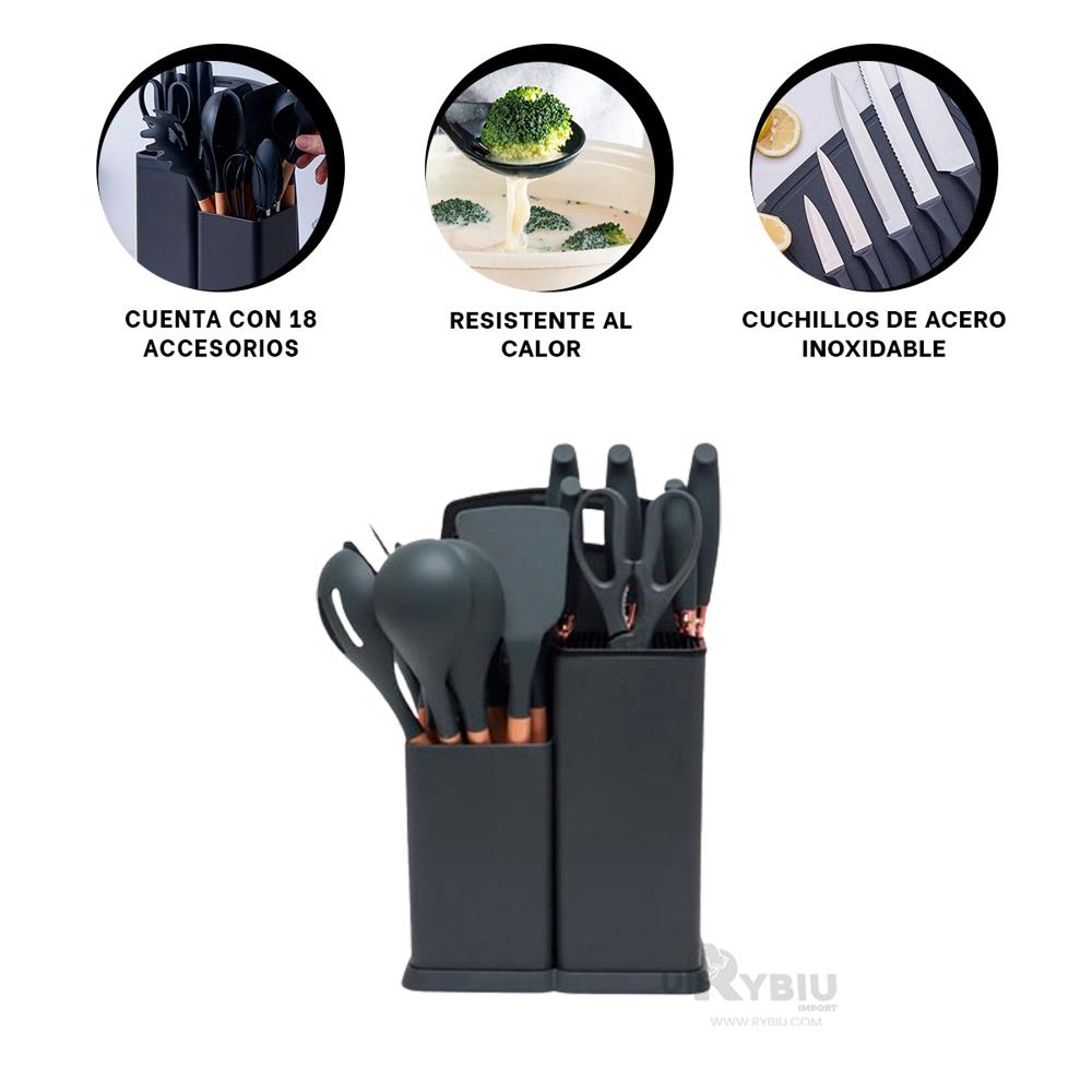Pack de Cubiertos para Cocina Negro Y+Banderitas Adhesivas
