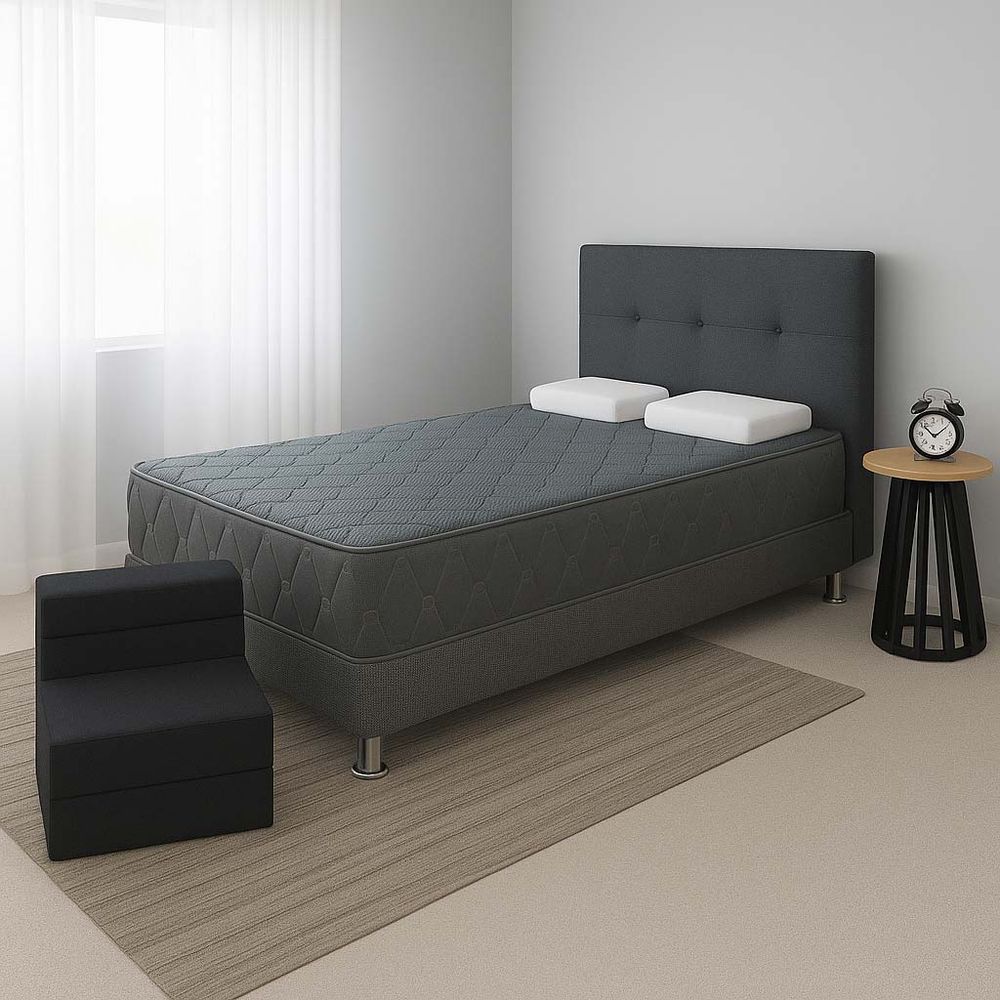 Pack Dormitorio Acqua Gris 2 Plazas + Sofá Cama + 1 Mesa Lateral Roma Negro