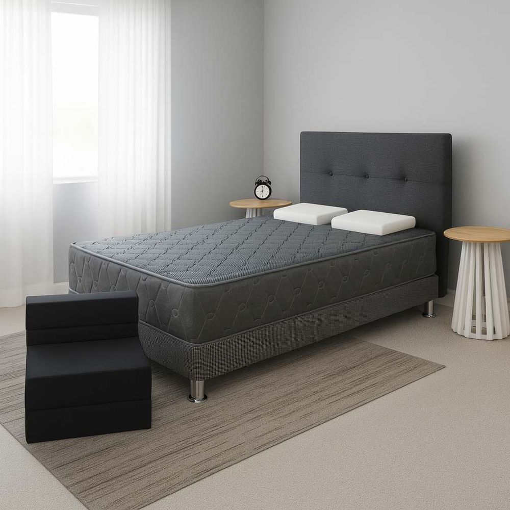 Pack Dormitorio Acqua Gris 2 Plazas + Sofá Cama + 2 Mesa Lateral Roma Blanco