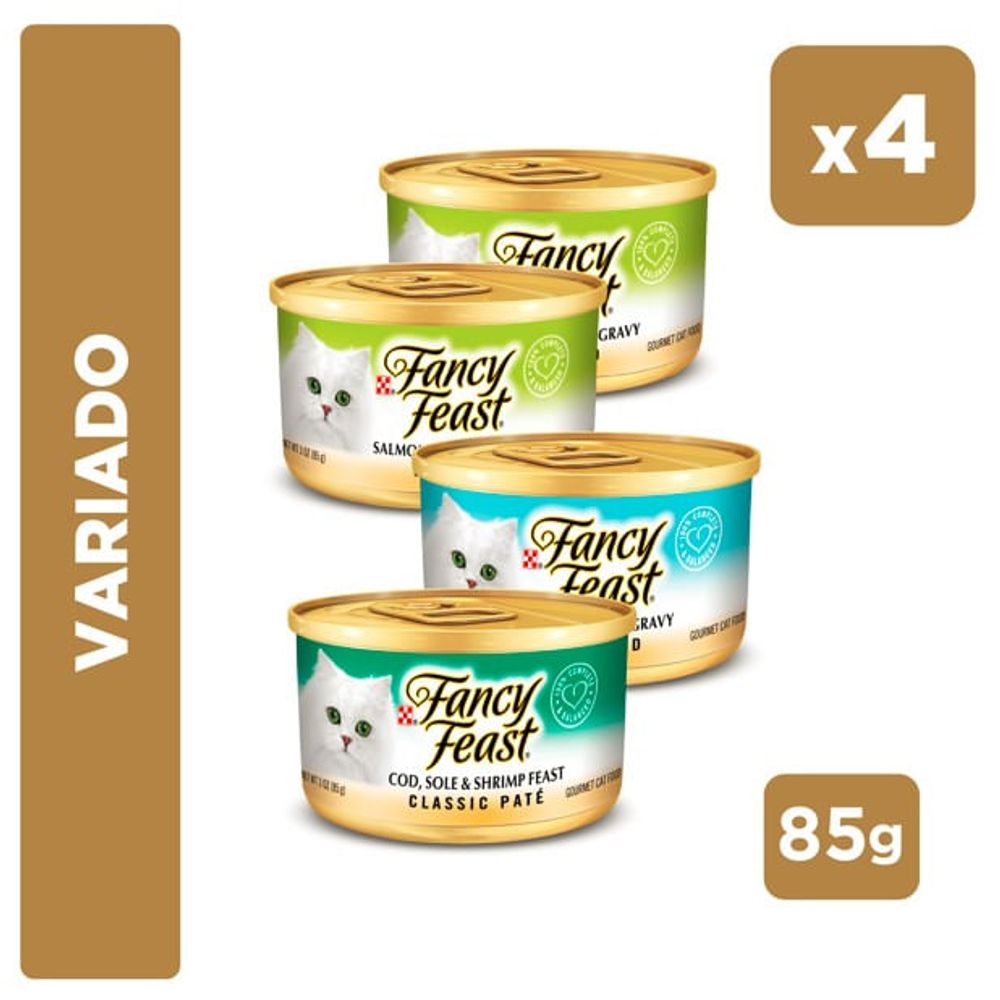 Pack FANCY FEAST Alimento para Gatos Grilled Salmón 85g + Gravy Lovers Pollo 85g + Paté Pescado 85g