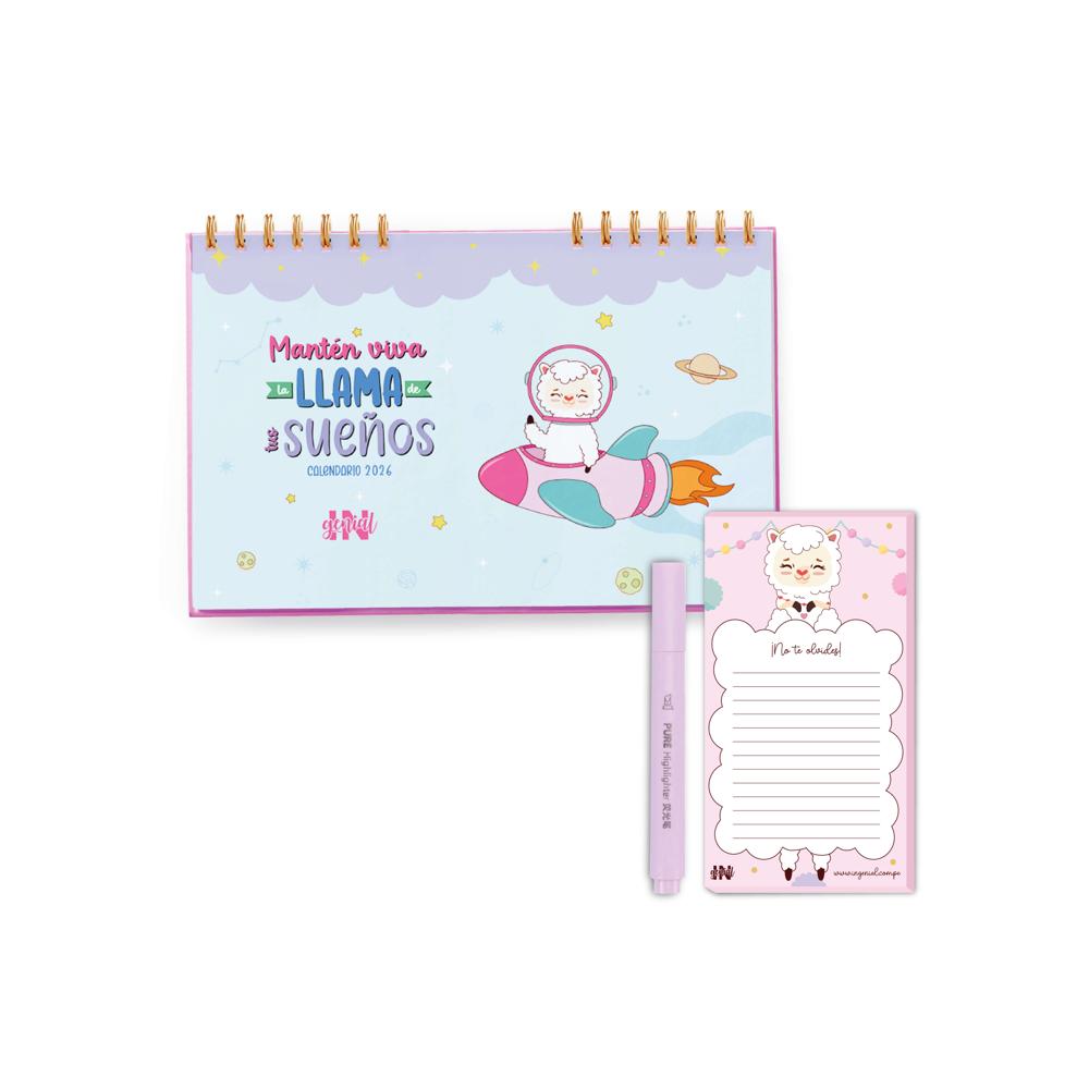 Pack Ingenial Llamibrilla: Calendario 2026 + notas magnéticas + resaltador
