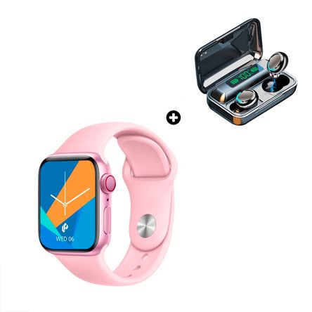 Pack Smartwatch T900 Pro Max Serie 8 Rosa + Audifonos Bluetooth F9-5
