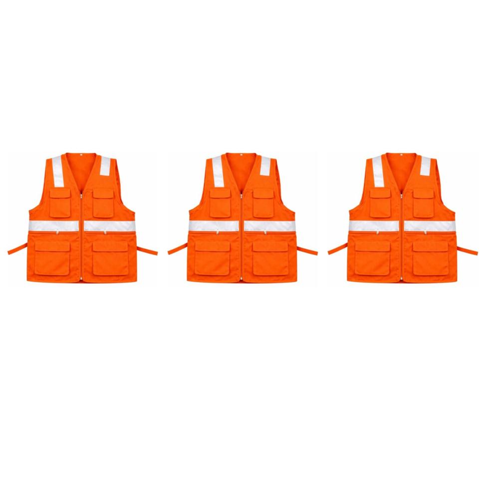 PACK X 3 UND CHALECO DE DRIL MULTIBOLSILLO ALTA VISIBILIDAD COLOR NARANJA TALLA M