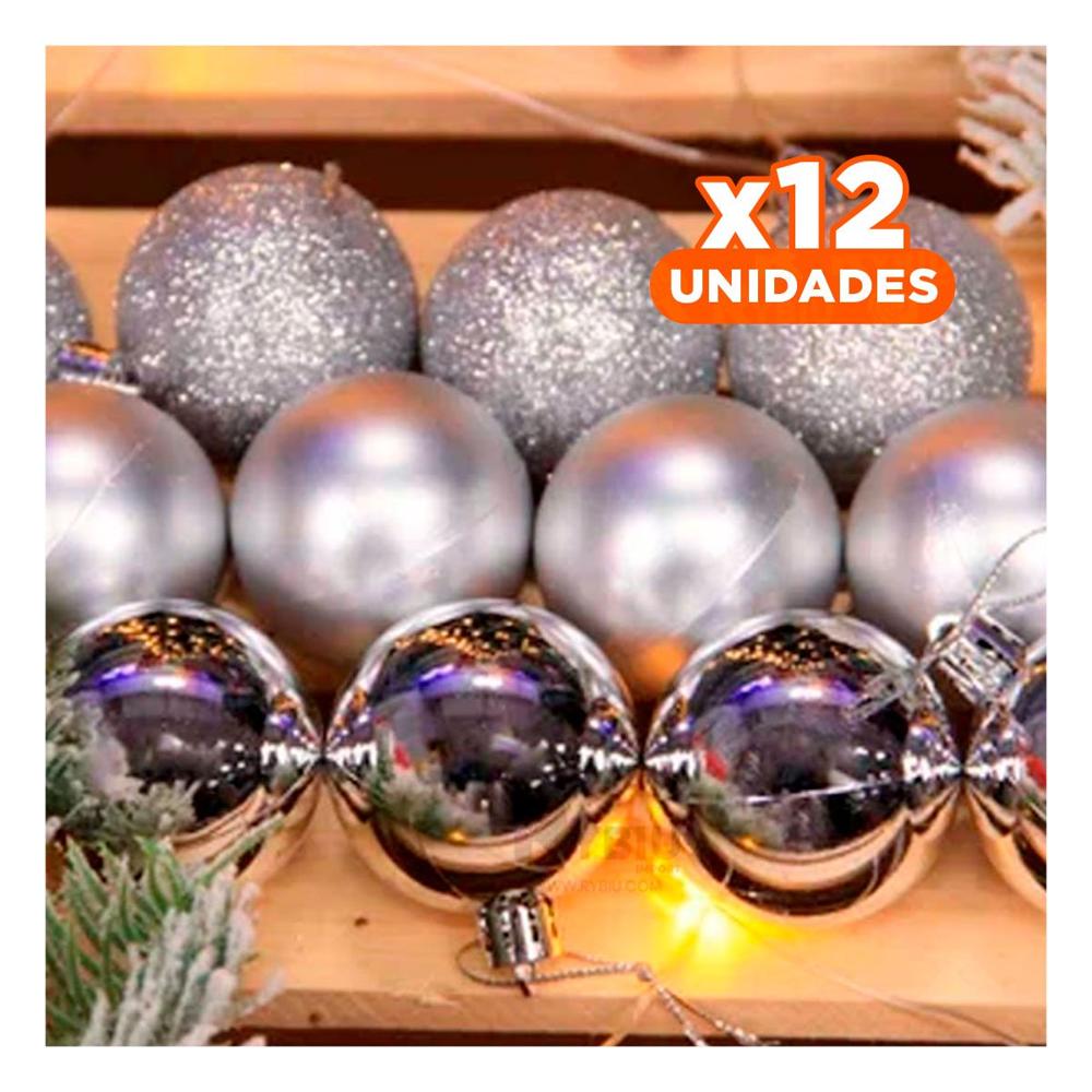 Pack12 Decoracion de Bolitas para Arbol en Plateado Y+Regalo Stickers