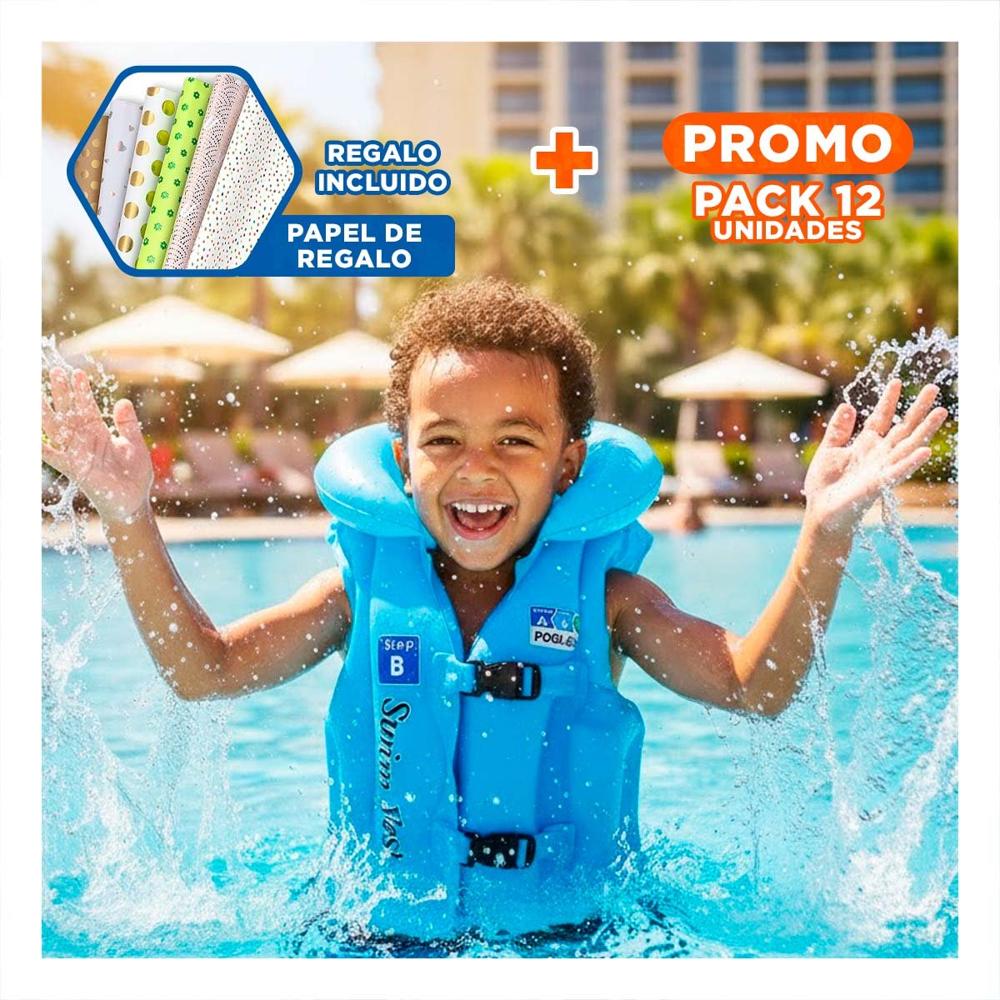 Pack12 Inflable de Juego Infantil MG-4001A Celeste Chaleco para Niños Y+Papel Regalo