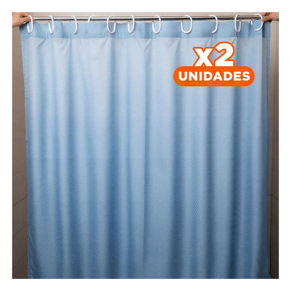 Pack2 Cortina de Ducha en Celeste con Patron Triangulos y Medidas 180x180cm Y+Papel Regalo