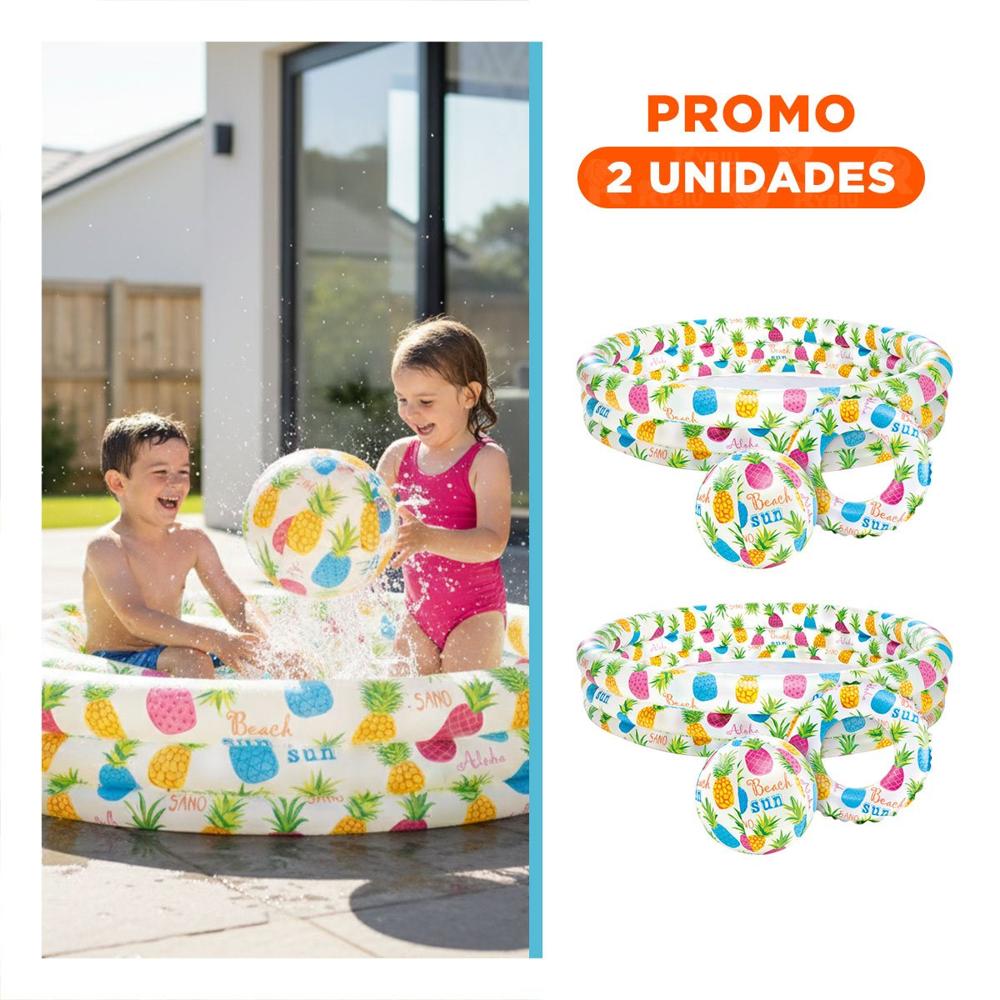 Pack2 Piscina Inflable Decorativa para Hogar con Estilo Tropical y Pelota Recreativa