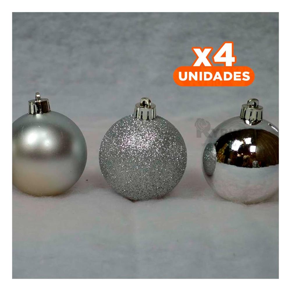 Pack4 Adorno Brillante de Navidad Plateado Y+Regalo Stickers