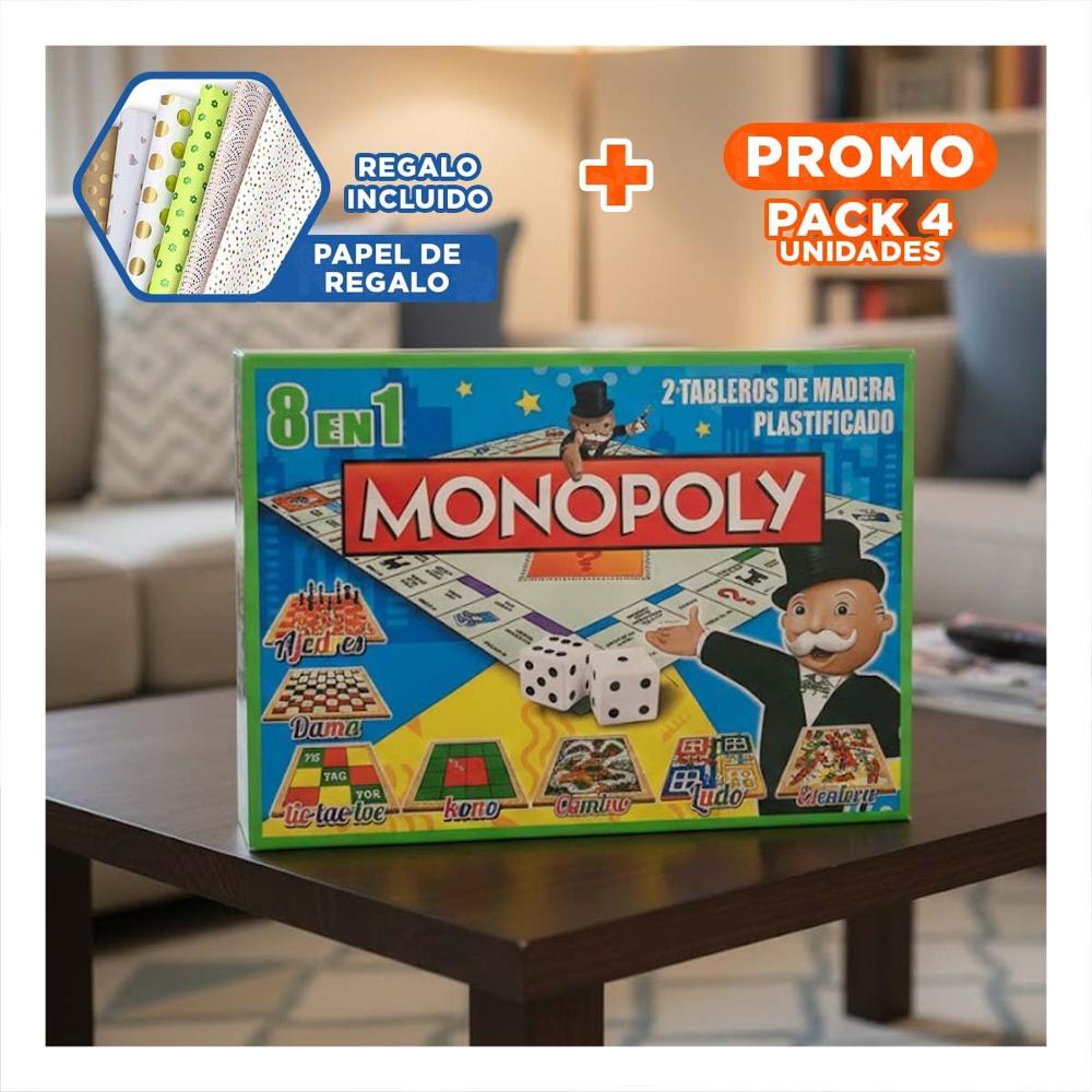 Pack4 Alternativa Social Multicolor para Hogar con Diversion de Mesa y Reuniones Y+Papel Regalo