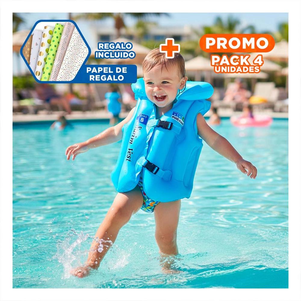 Pack4 Flotador de Juego MG-4001A Celeste Chaleco Seguro y Comodo Y+Papel Regalo