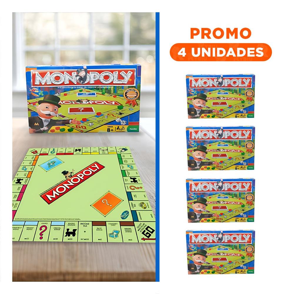 Pack4 Negocios Monopolio de Mesa con Tablero de Madera Multicolor Familiar Y+Regalo Sticker