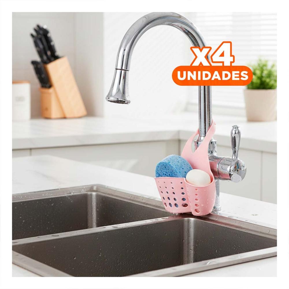 Pack4 Receptaculo Colgante Rosado para Organizar Esponjas y Accesorios 19x15cm