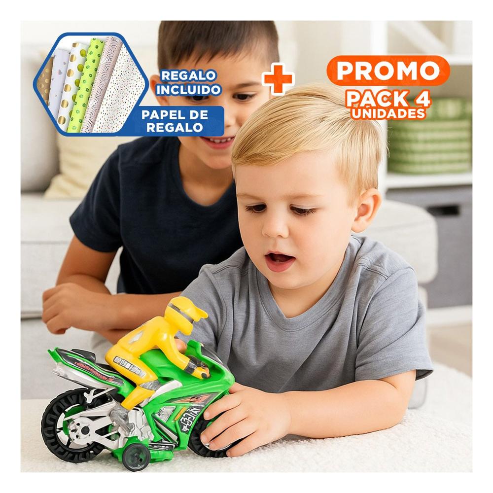 Pack4 Vehiculo Verde con Sonidos y Aventura para Niños Y+Papel Regalo