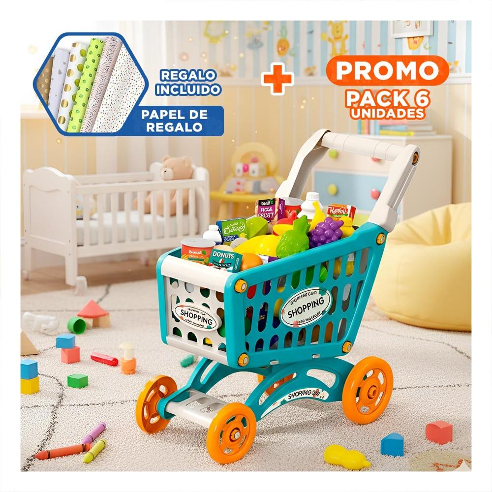 Pack6 Carrito de Compras para Infantes con Accesorios para Juego Creativo Y+Papel Regalo