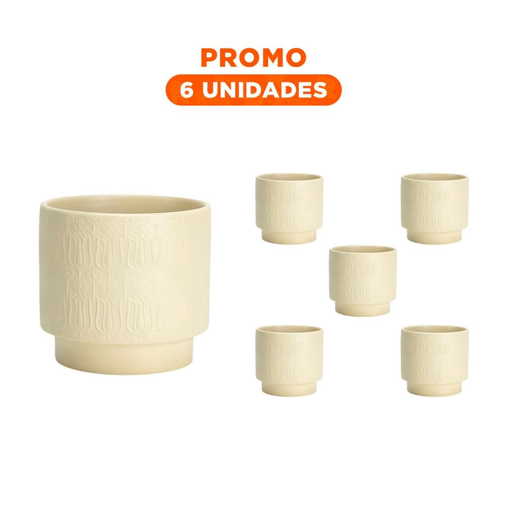 Pack6 Cubo Cilindro Ceramica 13x13cm Crema Para Tulipanes Flores Moderno