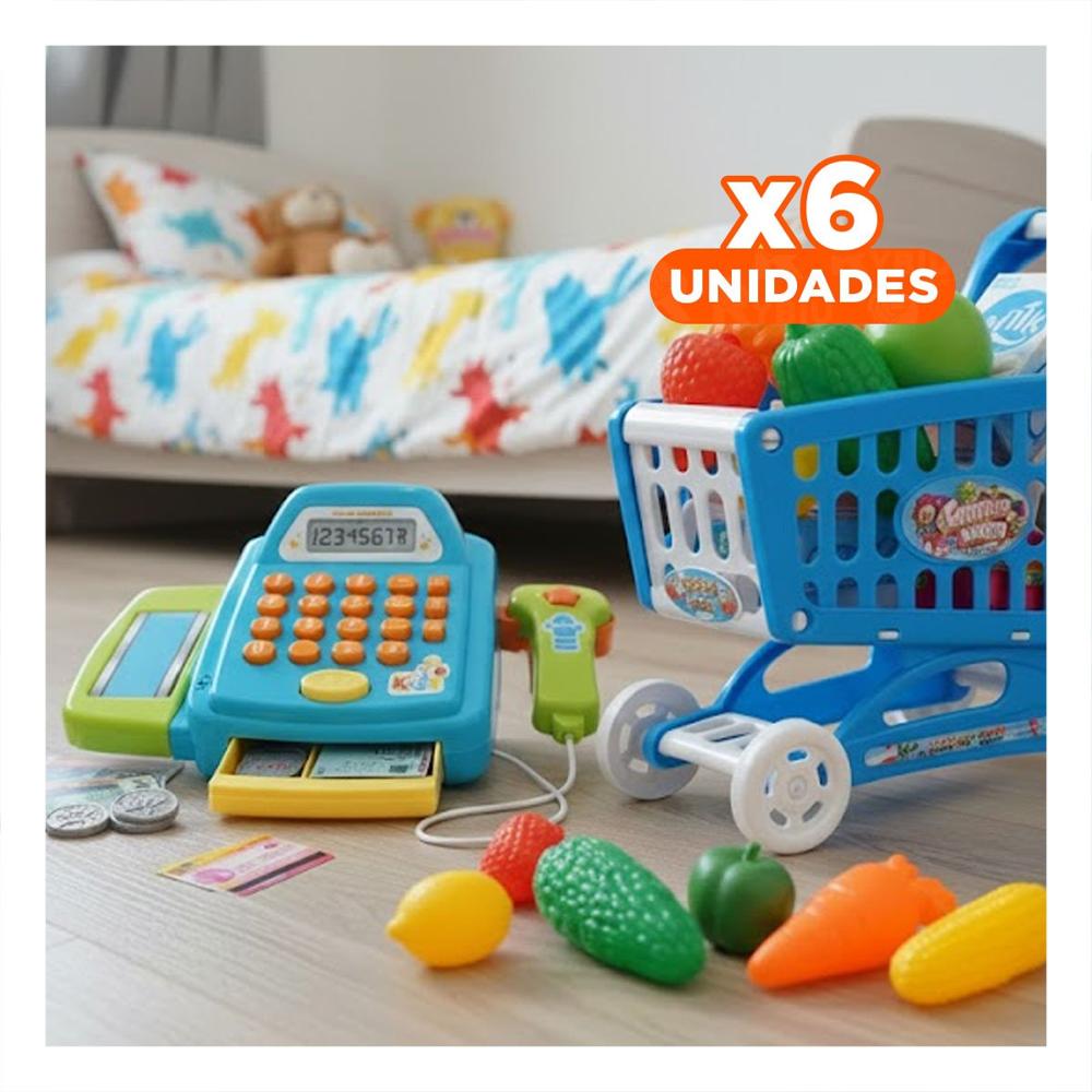 Pack6 Escenario de Supermercado con Caja Registradora y Carrito Pequeno Y+Regalo Sticker