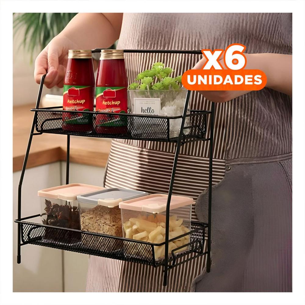 Pack6 Repisa 2 Niveles Multiuso Ligera y Resistente para Casa Negro Y+Regalo Sticker