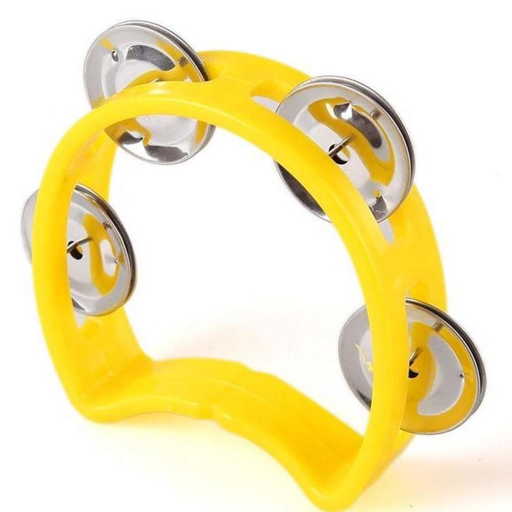 Pandereta amarilla de 4 chapas para niño.
