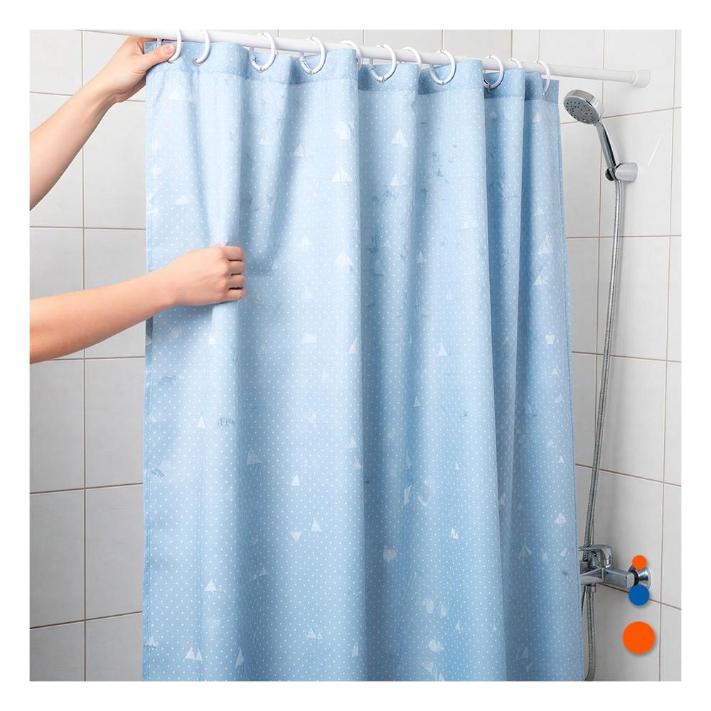 Panel Celeste aplicado a Ducha con Patron Triangulos en 180x180cm Y+Regalo Sticker