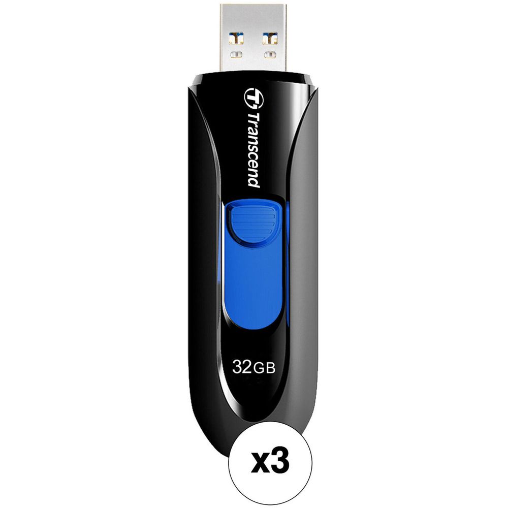 Paquete de 3 Unidades de Memoria Usb 3.0 Transcend Jetflash 790 de 32Gb en Color Negro - 1599726-REG
