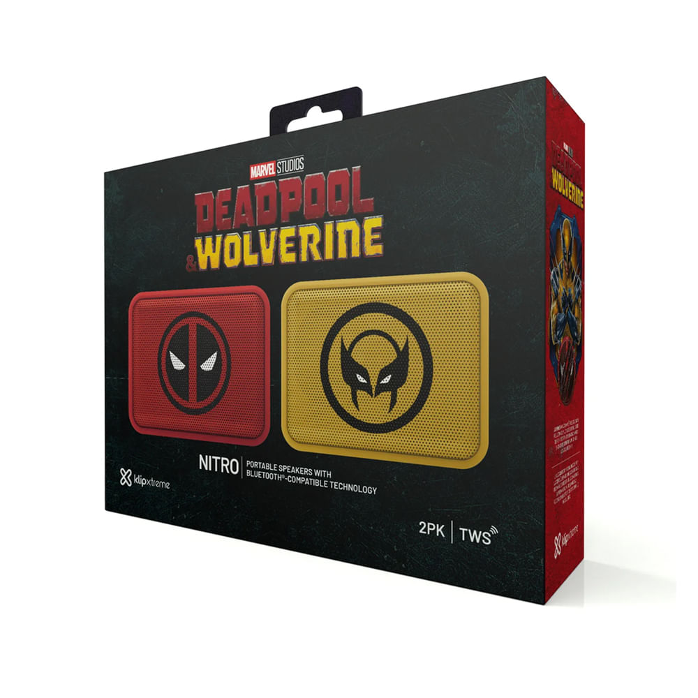 Par de altavoces Klip Xtreme KBS-025MD - Sonido potente con diseños de Deadpool y Wolverine