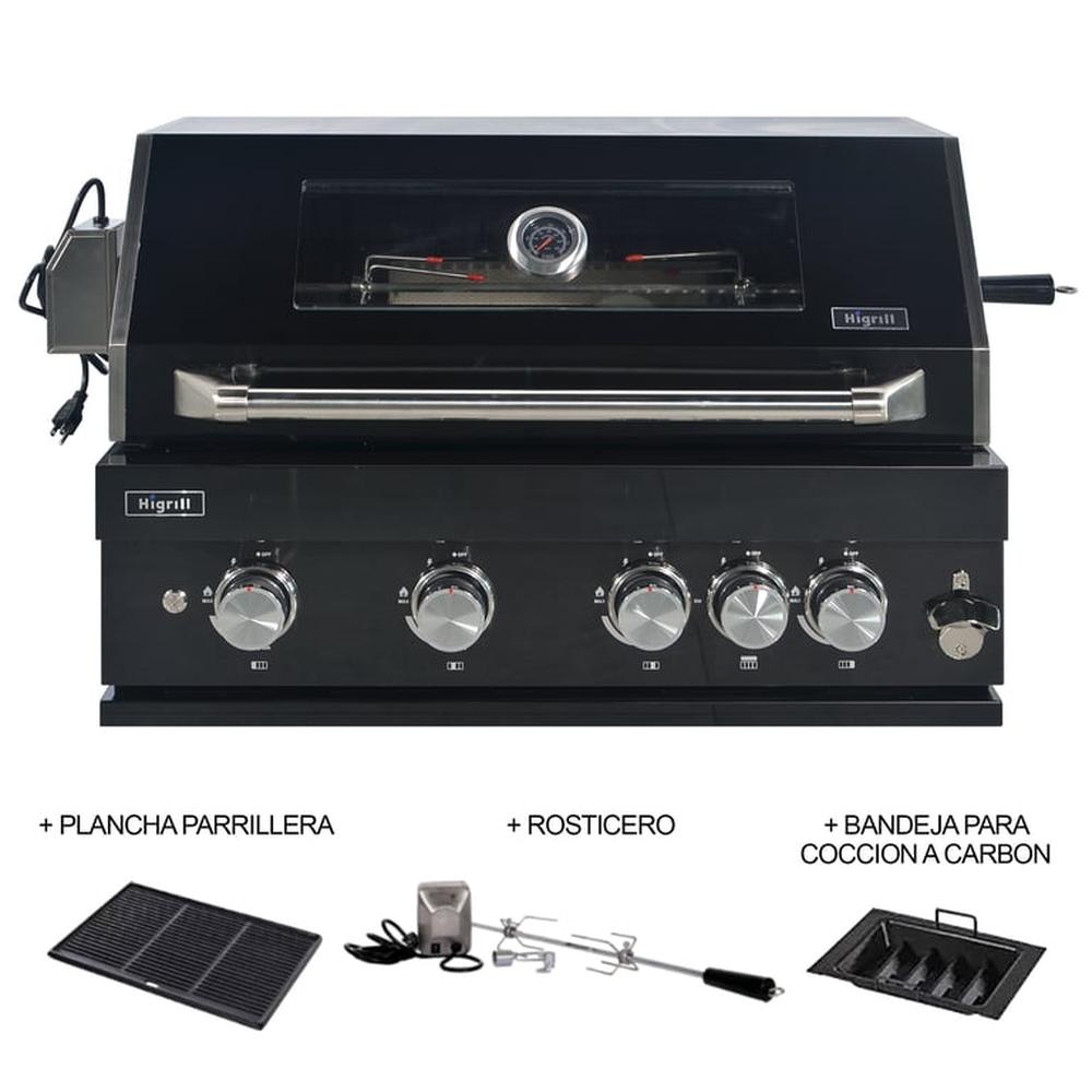 Parrilla a Gas Empotrable Con Rosticero Giratorio Carbonera y Plancha