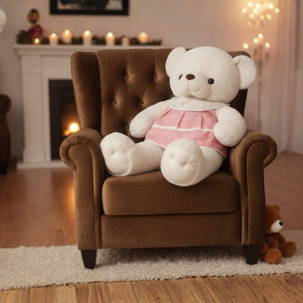 Peluche Oso Grande Crema con Vestido Rosado