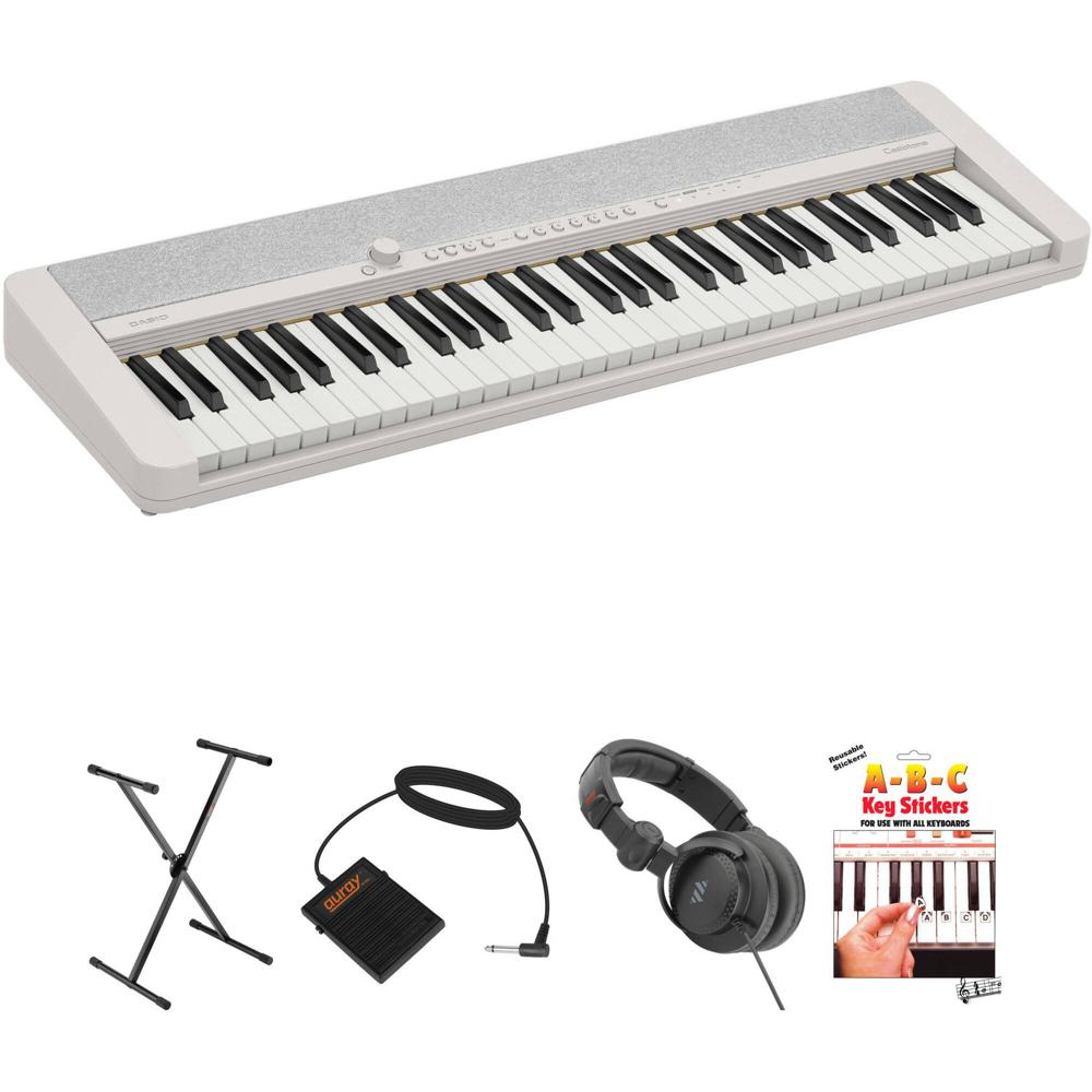 Piano Digital Portátil Casio CT-S1 de 61 Teclas - Kit Esencial (Blanco) con Soporte, Pedal de Sosten - 1673601-REG