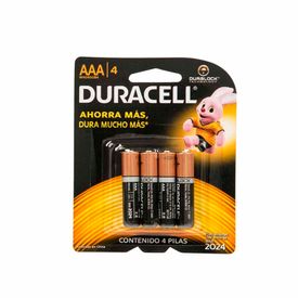 Pilas Alcalinas Duracell AAA x4 Unidades Zinc/Carbón 1.5V