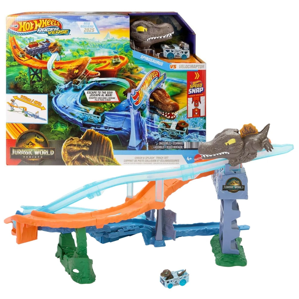Pista Hot Wheels Jurassic World Rebirth Spinosaurus vs Velociraptor