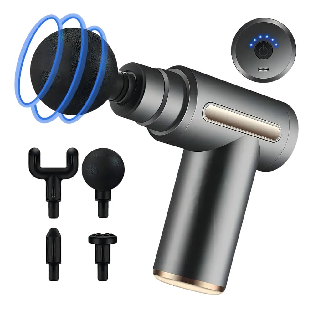 Pistola De Masaje Muscular Para Relajar Aliviar El Dolor 4 Cabezales 6 Velocidades Gris