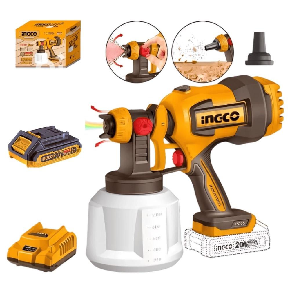 Pistola De Pintar Ingco Csgli20042 20V 1000Ml + Boquillas