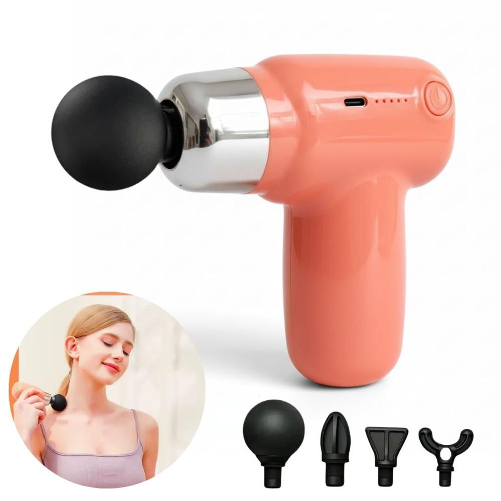 Pistola Masajeador 4 en 1 Masaje Muscular Multifuncional 5 Velocidades Rosado