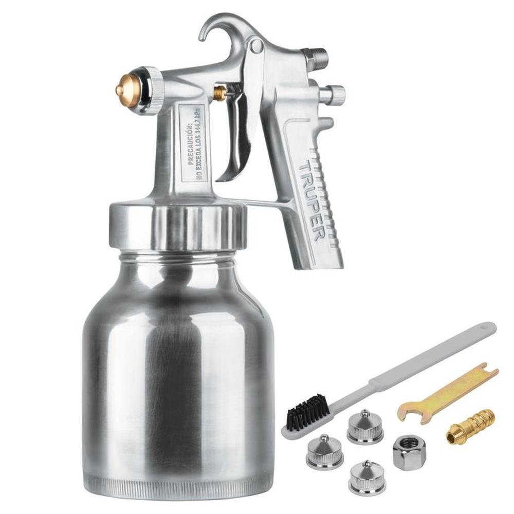 Pistola para pintar baja presión fino acabado entrada sup Truper Gris