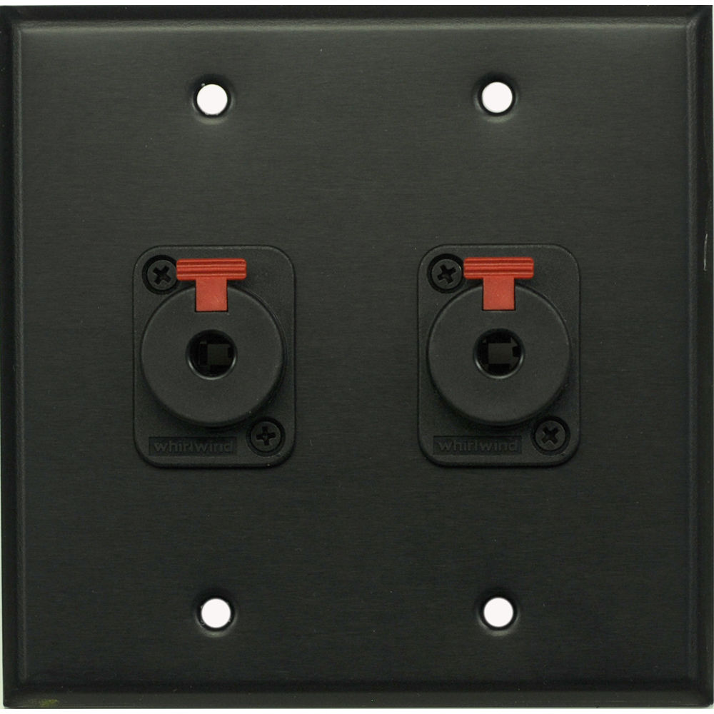 Placa de Pared de 2 Gangios Whirlwind WP2B/2QW con 2 Terminales Whirlwind WCQF de 1/4" (Acabado Negr