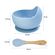Plato Silicona y Cuchara para Niño en Celeste Y+Agendita