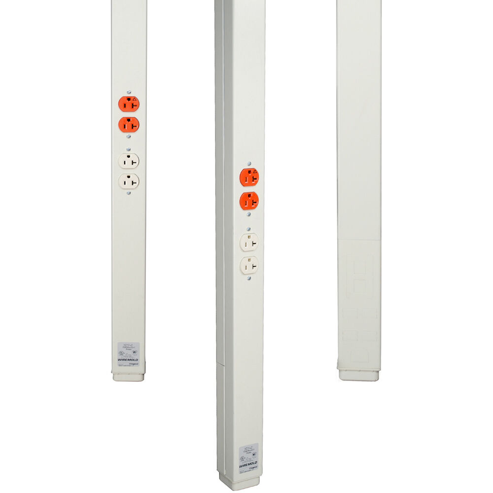 Polo de Energía Tele-Power Wiremold con Tierra Dedicada (Blanco, 10.4') - Canales Duales, Toma Pre-c