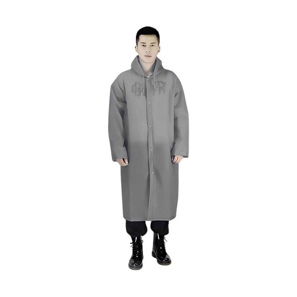 Poncho Impermeable Grueso de Mangas Rectas con Capucha y Botones Plomo