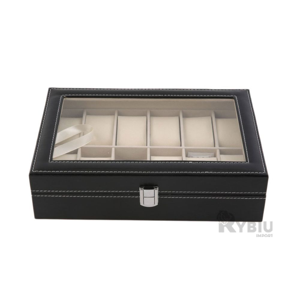 Porta Reloj con 12 Espacios y Tapa de Cristal