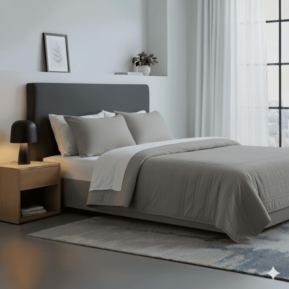 Quilt Gris c/funda Sham King Free Home Premium - Cubrecama Gris algodón 220 hilos funda Sham King Free Home Premium