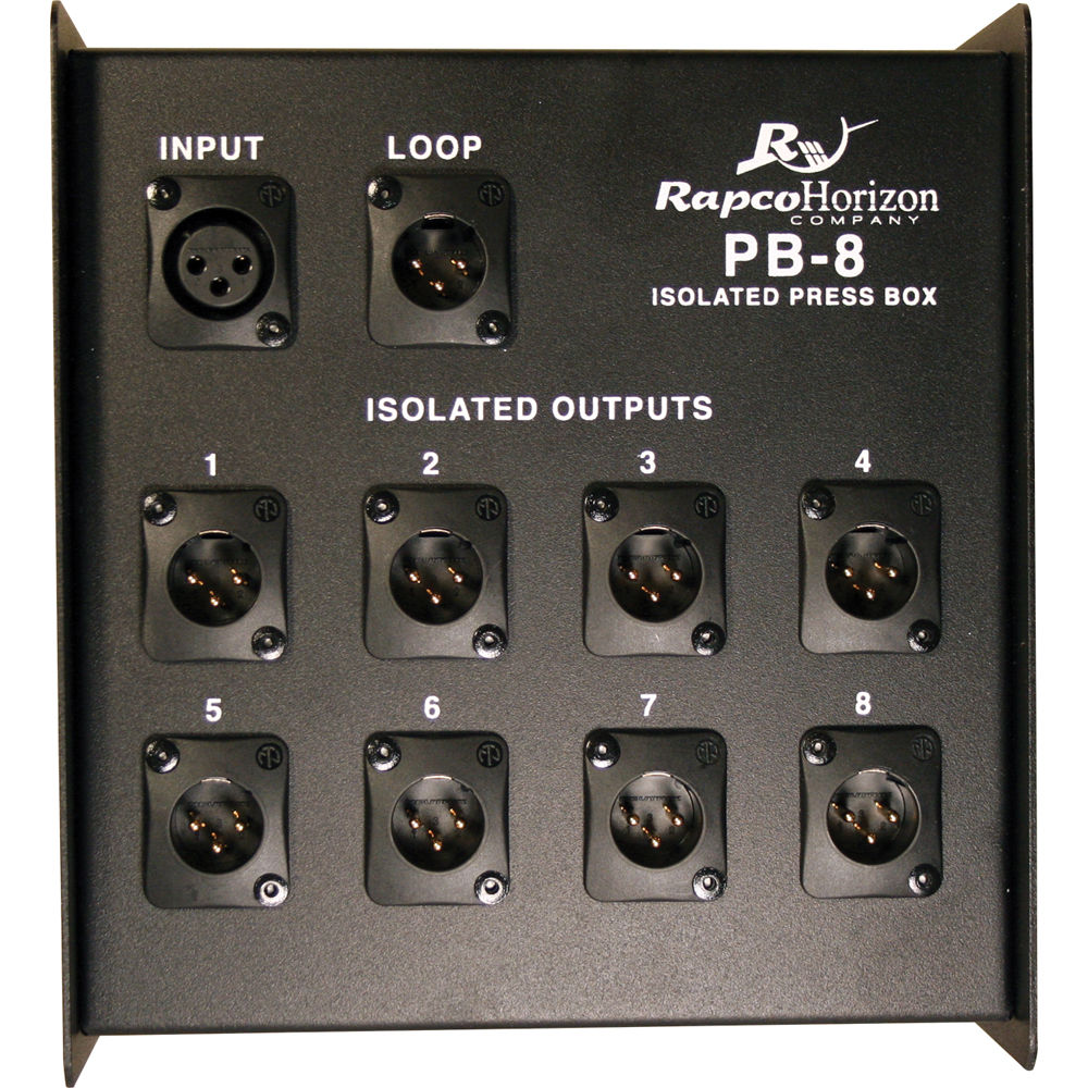 RapcoHorizon PB-8: Caja de Prensa Aislada de 8 Canales con Entradas y Salidas XLR