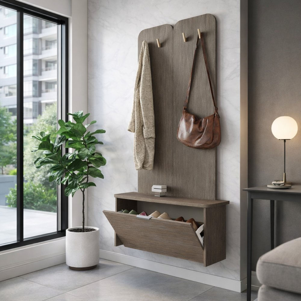 Recibidor Zapatero Perchero Zelma Color Marrón Tu Mesita