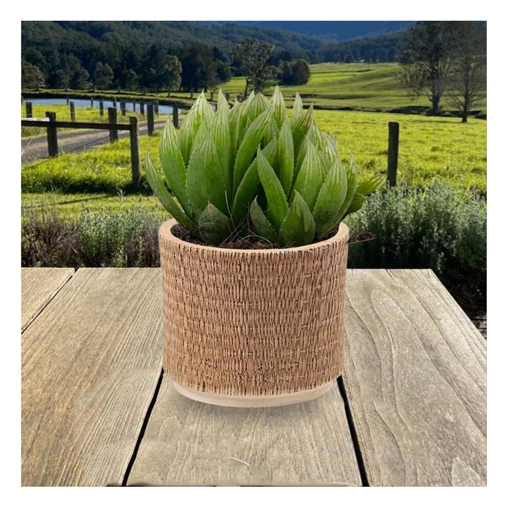 Recipiente Moderno Cemento 13x13cm Mostaza Tejido Rafia Hogar Y+Regalo Sticker