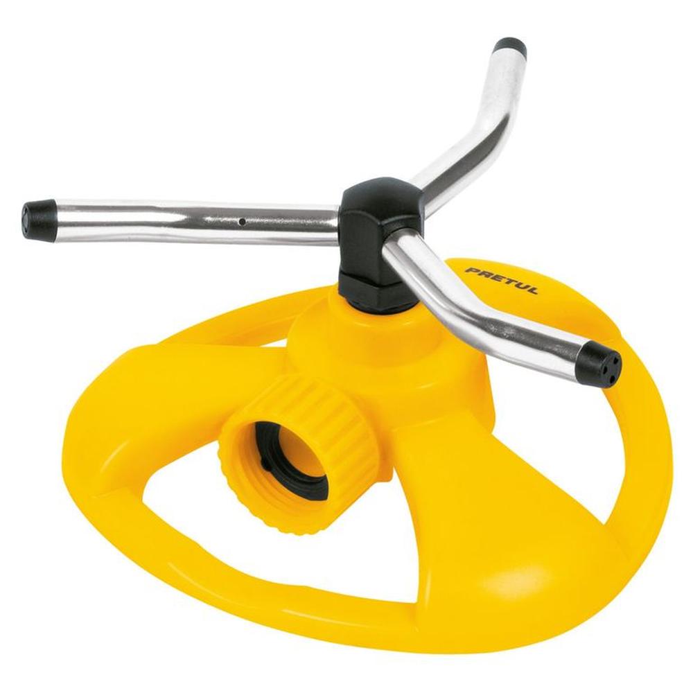 Regador Aspersor mariposa de riego base plástica, con 3 aspas Pretul Amarillo