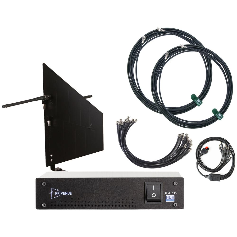 RF Venue Antena de Pared Diversity Fin y Sistema de Distribución UHF DISTRO5 de 5 Canales (Negro, 47