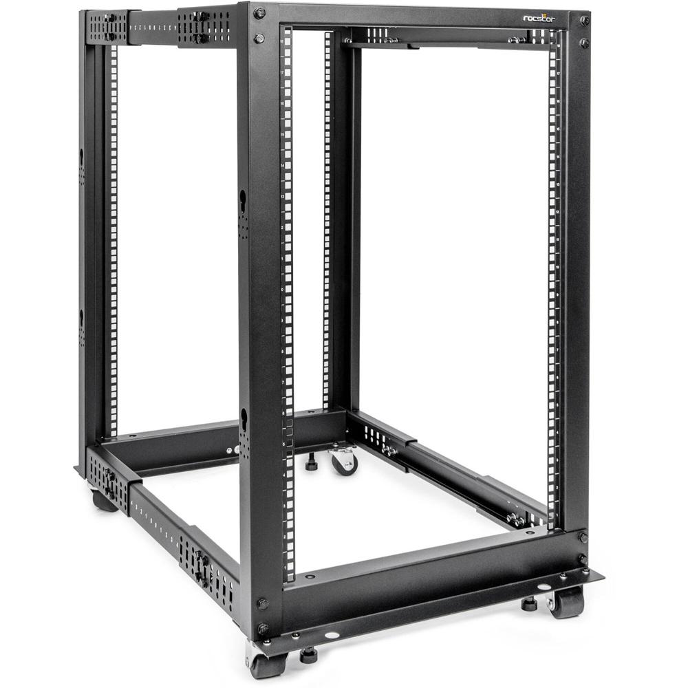 Rocstor SolidRack Marco Abierto 4-Puertos Ajustable en Profundidad (Negro, 18 RU) - Capacidad de Car