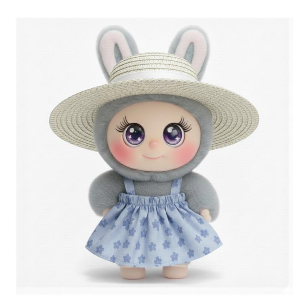 Ropa para Muñeco Labubu con Vestido Azul y Sombrero - Estilo Campestre
