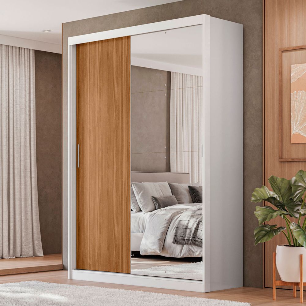 Ropero Riva 2 Puertas 4 Cajones Con Espejo Almendra Blanco Flex